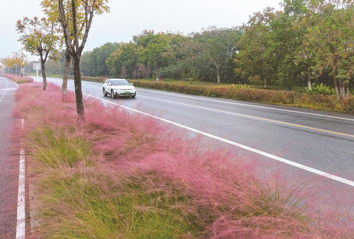 10月30日上午,巢湖市烔长路上,粉黛乱子草构成绵延不绝的视觉主线。南侧的花带连绵不断,如霞如霭,与周边绿植相映成趣,形成“车行画中、人游花中”的诗意景致。若缓步其间,更能近距离感受粉黛的柔美气质,体验“远处看绿、近处看彩、路边看花”的多维视觉享受。