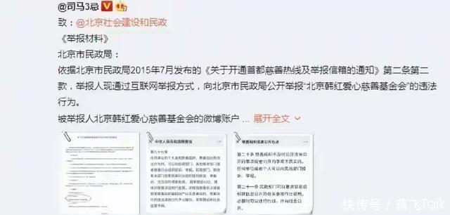 但她认为自己这样做非常的值得,因为她知道灾区的这些民众全都在等着她的这些物资。 等到她快把事情处理的差不多时,一个叫做司马三忌的网友直接就对韩红进行举报,认为她所做出来的很多事情全都违法了。