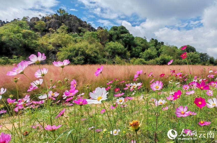 石林风景区内波斯菊盛开。赵国洪摄人民网昆明9月19日电 秋日的云南乃古石林风景区,大片波斯菊盛放。沿着石板小路向深处走去,路旁连片的粉黛乱子草随风摇曳,宛如轻柔的粉色云雾,悄然飘落人间。红的明艳、粉的娇嫩、白的素雅,和历经2.7亿年岁月雕琢的灰黑色石头丛林相映成趣股票配资咨询行情,尽显秋日独有的浪漫。(尹馨、刘莎)