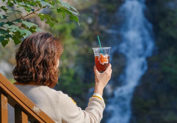 在浮槎山,手捧咖啡与瀑布合影是很多游客的“必选项” 。海燕摄